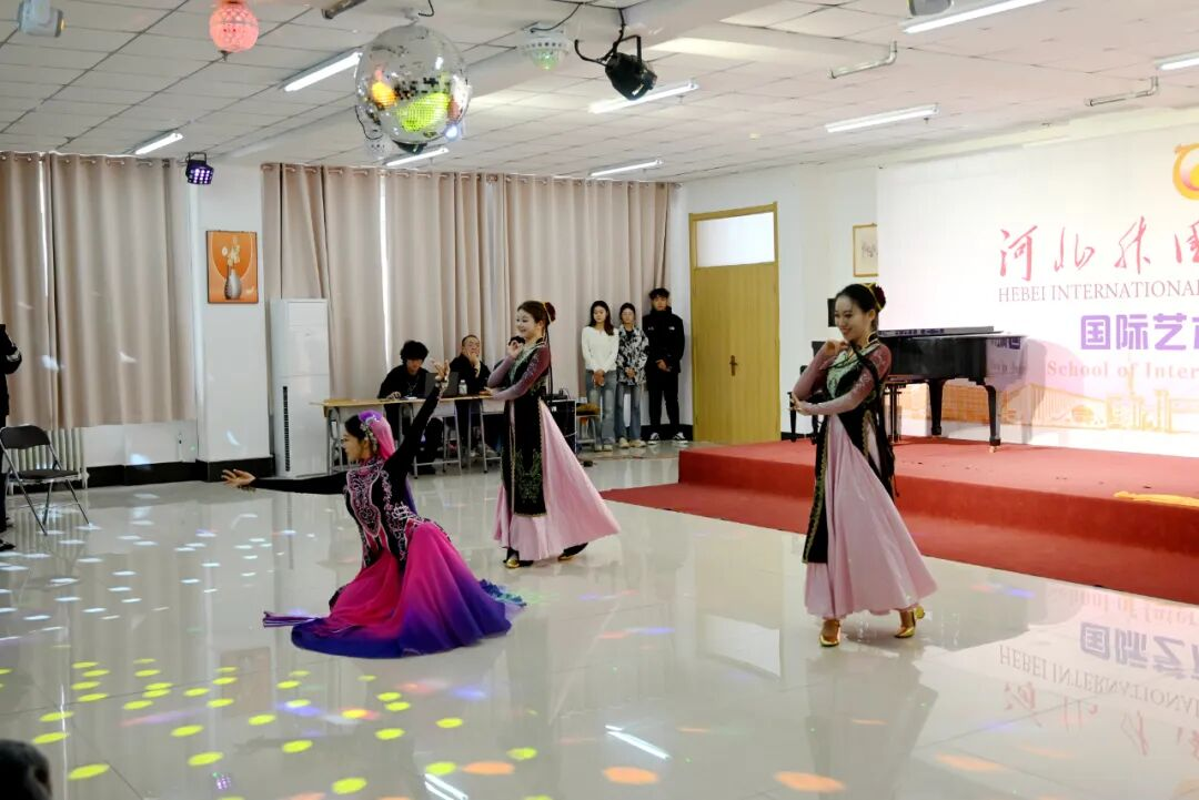В учебном корпусе Ханьтан многонациональные песни и танцы, представленные преподавателями и учащимися Института искусств, вызвали бурю аплодисментов у делегации.